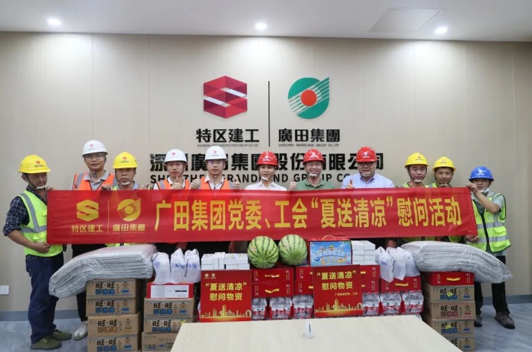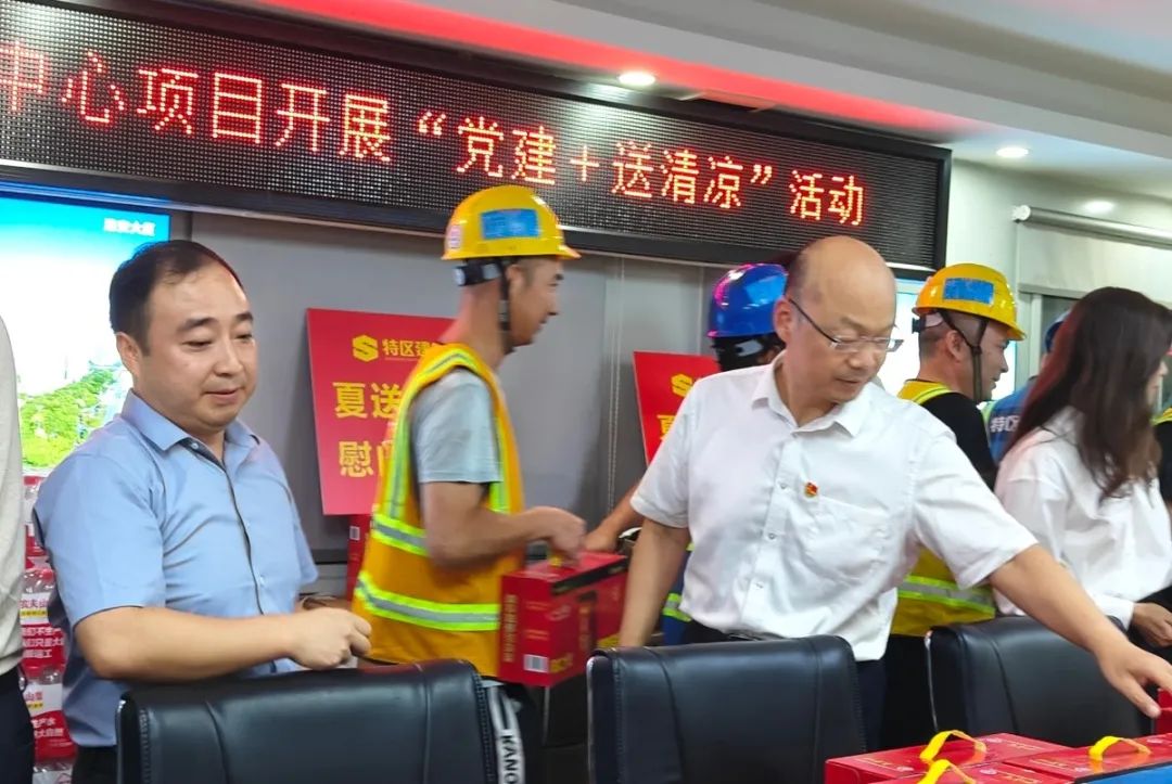 为深入学习贯彻党的二十届三中全会精神,进一步加强高温期间劳动保护工作,落实落细防暑降温措施和安全生产工作。8月15日,特区建工集团党委委员、副总裁、九游极速版下载党委书记、董事长于琦、九游极速版下载党委委员、纪委书记张锦分别带队赴天健商务大厦、荔香公共文体中心、天津大学佐治亚理工深圳学院校区等项目工地,走访施工现场调研并进行安全生产检查,同时为一线员工“送清凉”慰问。九游极速版下载党委委员、副总裁白雪;党委委员、副总裁谢国力、工会委员代表陪同参加。